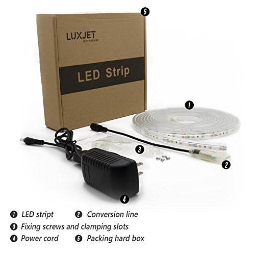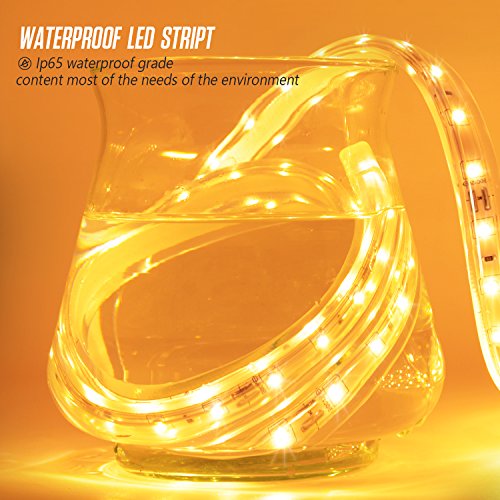 - Energy Saving and Eco-friendly: The strip light is 16.4 ft(5 meter) in length with only 24W total, offers you bright decor lighting and save your 90% energy cost comparied with tradtional incandescent bulb.No splash and UV, without mercury and no damage to human and environment