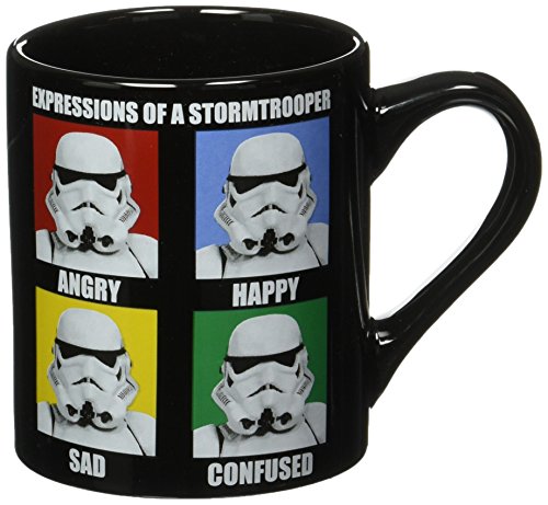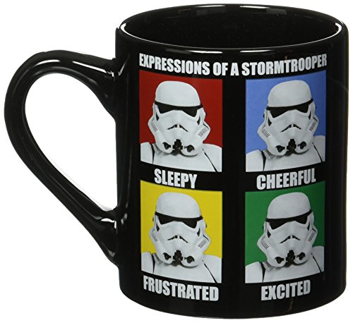 -. Binding : Kitchen -. Brand : Star Wars -. Color : Black -. EAN : 0817989019639 -. Feature : 14-ounce ceramic mug / Enjoy a hot beverage in style / Start your morning off with a smile / Show off your love of Star Wars / Microwave safe, HAND WASH ONLY -. Label : Star Wars -. Manufacturer : Star Wars -. Model : SW9932 -. MPN : SW9932 -. PackageQuantity : 1 -. PartNumber : SW9932 -. ProductGroup : Kitchen -. ProductTypeName : KITCHEN -. Publisher : Star Wars -. Size : 14 oz. -. Studio : Star Wars -. Title : Silver Buffalo SW9932 Star Wars Stormtrooper Expressions Ceramic Mug, 14 oz., Black -. UPC : 817989019639