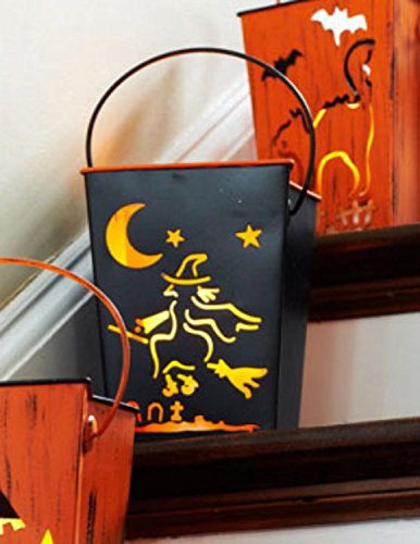 -. Title : 7" Witch Flying on Broom Black Halloween Candle Lantern Luminary