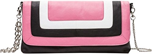 Sinequanone Ladies Clutch / Pouch / Shoulder Bag Black, Pink, White; 13.2 x 6.8 x 1.1 in (LxHxW)
