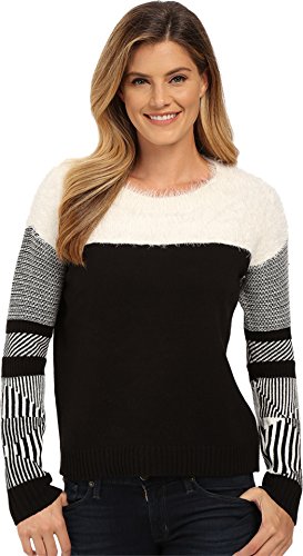 Fuzzy yarns bring playful, soft-focus dimension to the upper half of this slouchy sweater finished with graphic jacquard patterning. Crew neckline. Long sleeves. Straight hemline. Upper: 100% nylon; Lower: 60% cotton, 50% acrylic. Hand wash cold, dry flat. Imported.