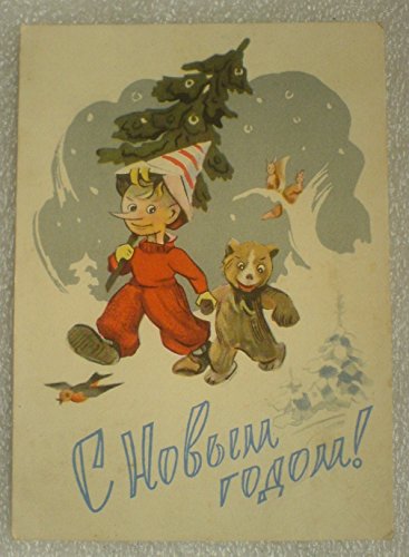 1960 Pinocchio Teddy-bear USSR Soviet Union Russian Greeting Christmas Happy New Year Postcard