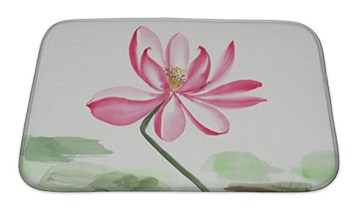 Gear New No Slip Microfiber Memory Foam Lotus Flower Watercolor Painting Bath Rug Mat, 24" X 17"