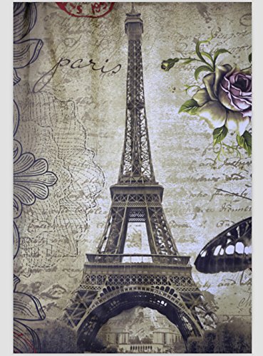 Morning-sunshine 72 x 72 Inch Paris Eiffel Tower Shower Curtain, Heavy-duty Waterproof Polyester Fabric Shower Curtains, Butterfly and Flower Pale Brown Bathroom Curtain