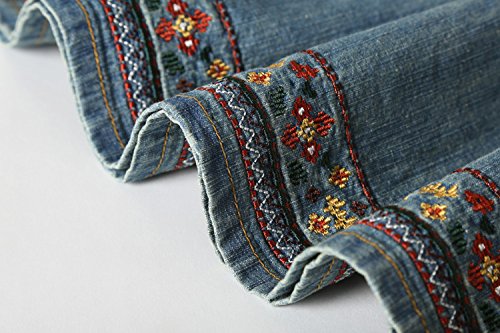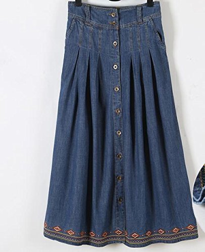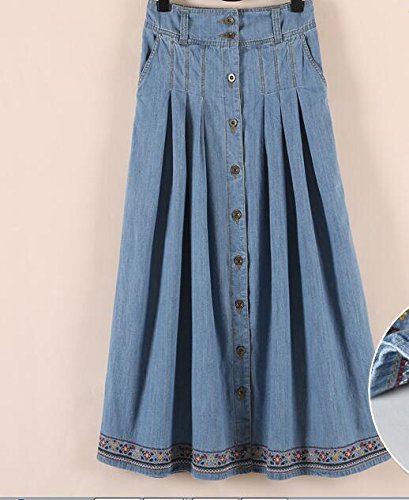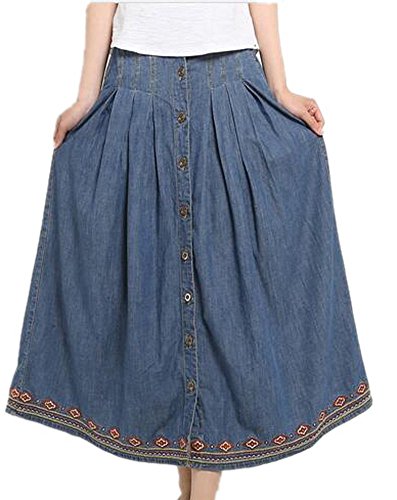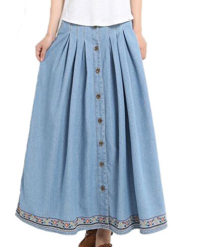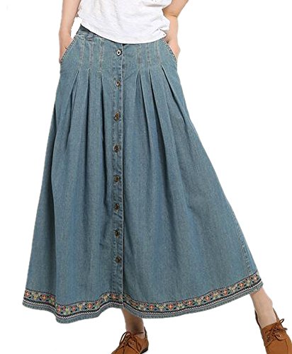 -. Title : Skirt BL Women Vintage Single Breasted Blue Pleated Maxi Embroidered Denim Skirt