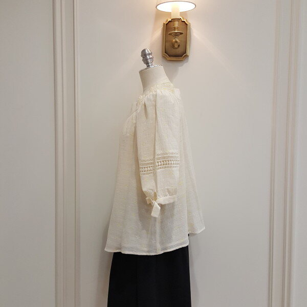 옐로 스티치가 ?어간 앞과 뒤가 언발란스한 귀여운 스타일의 블라우스