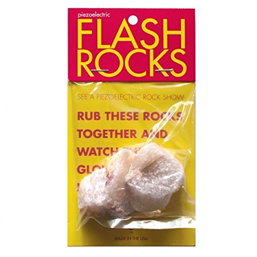 -. Feature : 2 quartz rocks with piezoelectric properties / Spark and glow in the dark when rubbed against each other / Rocks range from 1 - 4 inches in length