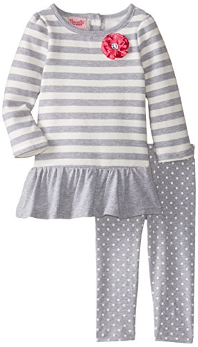 -. Binding : Apparel -. Brand : Nannette -. Department : baby-girls -. Feature : 3 button closure on the back / Elastic all around pant -. Label : Nannette Baby -. Manufacturer : Nannette Baby -. PackageQuantity : 1 -. ProductGroup : Apparel -. ProductTypeName : SHIRT -. Publisher : Nannette Baby -. Studio : Nannette Baby -. Title : Nannette Baby Girls' 2 Piece Fleece Legging Set with Tacked On Flower 2 piece legging set. Shirt has a tacked on flower with a rhinestone button and a ruffle with shirring on the bottom