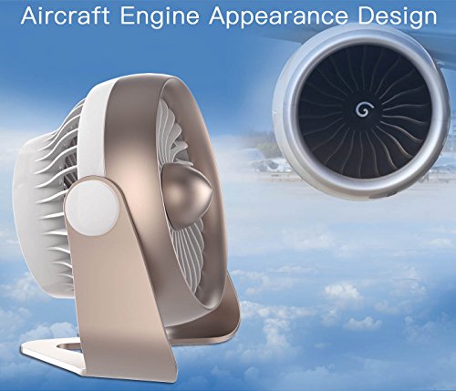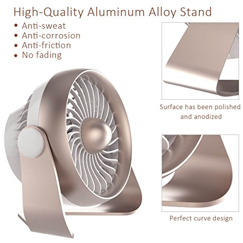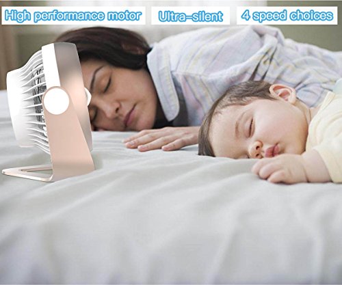 Small Desk Fan, Portable USB & Rechargeable Battery Operated Mini Personal Fan for Table, Desk, Office, Camping, Traveling, Dorm, Desktop, 4 Speeds, by AngLink