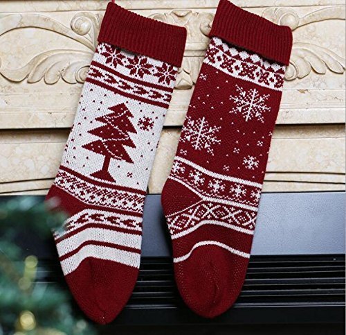 - Value Pack of 4 different Rustic stockings. Wine red with off white, classic Christmas tree / snowflake patterns. Great addition to holiday decorations & seasons decor.