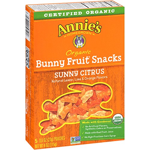 Organic Berry Patch Bunny Fruit Snacks are a delicious mix of strawberry, cherry and raspberry flavored bunnies. Certified organic, these vegan and gluten-free bunny-shaped fruit snacks are made with real fruit juice and packed with 100% Daily Value of Vitamin C.