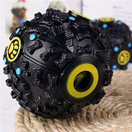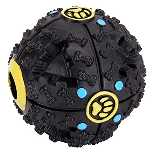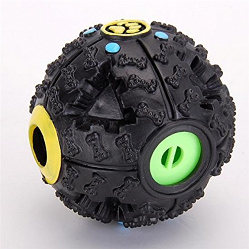 Description All you have to do is pop some treats inside the hole and let your pet play with the ball. They'll roll it on the ground and nibble at it until the treats come out! This treat ball also makes sounds when moved around which makes playing with it even more fun for your dog. Ball measures 9cm diameter and the treat hole measures 2cm approx. Make sure you buy treats small enough to fit through the hole. Keep your dog busy with this excellent treat ball Perfect for controlling pet behavioral problems Ball also makes a fun sound when moved around Ideal for encouraging active independent play Treat hole measures 2cm approx Size(Diameter) : A : 7cm B : 9.5cm Materials: Rubber Please note: puppies and dogs with sharp teeth may break into the item and chew parts off, as with all dog toys this is normal, as a very hard item will harm your pet. Package included: 1 Pcs Ball ¡¡