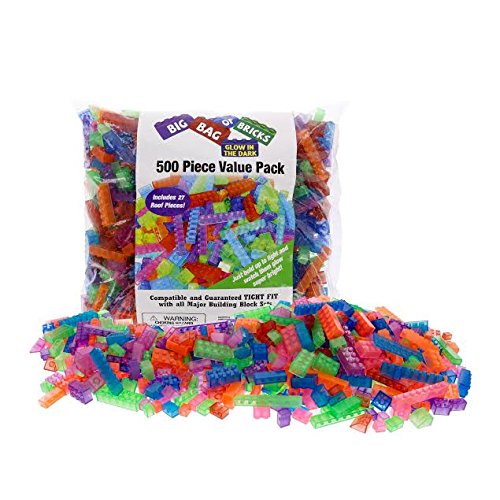 -. Binding : Toy -. Brand : SCS Direct -. EAN : 0656103018710 -. Feature : A Big Bag of building bricks - Unique Glow in the Dark and Neon Colors - 14 in all / By Big Bag of Bricks and Works With L.E.G.O* and all major building block manufacturers / Guaranteed Tight Fit - Enhance all your existing builds with Glow in the Dark! / A bunch of bricks Cheap - with LESS filler than all other sets / * THese bricks are not affiliated with or endorsed in any way by L.E.G.O, a registered trademark of L.E.G.O Systems. -. Label : SCS Direct -. LegalDisclaimer : * These bricks are not affiliated with or endorsed in any way by L.E.G.O, a registered trademark of L.E.G.O Systems. They merely are compatible and work with L.E.G.O and other major brands. -. Manufacturer : SCS Direct -. MPN : BRK_500GLW -. PartNumber : BRK_500GLW -. ProductGroup : Toy -. ProductTypeName : TOYS_AND_GAMES -. Publisher : SCS Direct -. Studio : SCS Direct -. Title : Building Bricks - 500 Pc "Big Bag of Bricks" Bulk Glow in the Dark and Neon-colored Blocks with 27 Roof Pieces - Tight Fit with L.E.G.O -. UPC : 656103018710