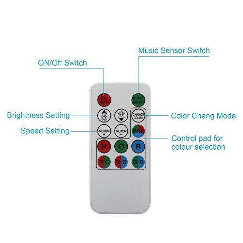 - 【REMOTE CONTROL】: Rotating Speed,Brightness and Color Selection can be Adjusted by Remote Controller.