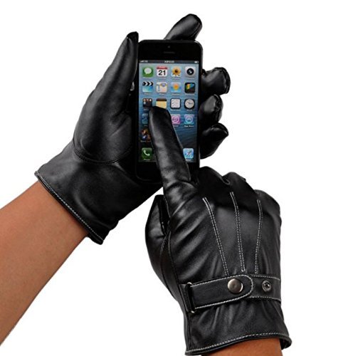 -. Feature : 手袋 をしたまま iPhone, スマートフォン や iPad, タブレット PC などの モバイル端末の液晶パネル タッチスクリーン操作ができる シンプル デザイン 裏起毛 スマホ グローブ です。タッチパネル 操作は全指対応です。防寒・防風、 アウトドア、自転車・サイクリング、バイク・オートバイ、レジャー、カジュアル から ビジネス シーン などにもオススメです。 / 材質:ソフトレザー(PUレザー)  内側は保温性に優れた ソフト起毛 フリース素材で寒さを防ぎます / サイズ:フリー 男性M~L size 相当 (掌周り20~24センチがフィットレンジです)    リスト部分にてボタンで2段階サイズ調整出来ます / 【商品内容】スマホグローブ x1ペア
