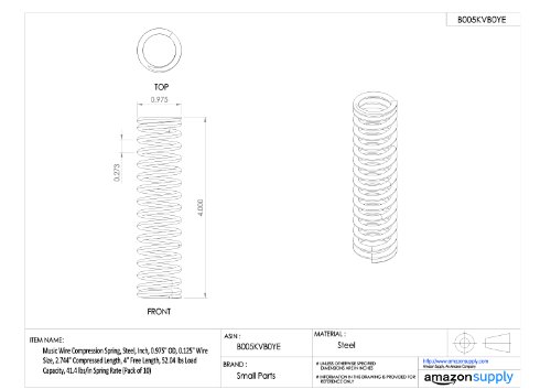 Music Wire Compression Spring, Steel, Inch, 0.975" OD, 0.125" Wire Size, 0.669" Compressed Length, 0.88" Free Length, 52.04 lbs Load Capacity, 246.6 lbs/in Spring Rate (Pack of 10)