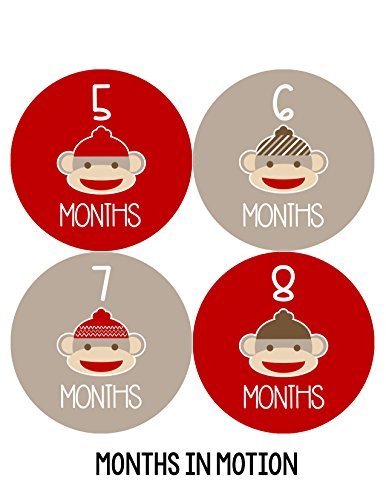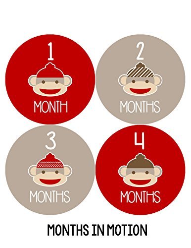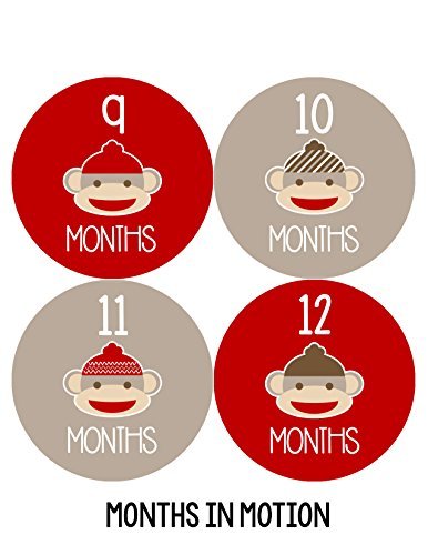 -. Title : Months in Motion 049 Monthly Baby Stickers Red Sock Monkey Months 1-12 Milestone