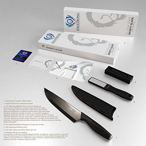 15x the edge retainment of steel - Included is the PerfectFit BPA free sheath and EdgeLast diamond dust sharpener to ensure a life long laser sharp edge
