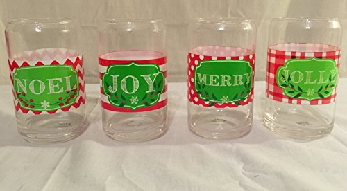 -. Title : 4pc Assorted Holiday Saying Design Cocktail Beverage Glass Cup Tumbler Barware 10oz