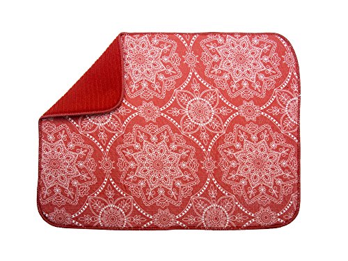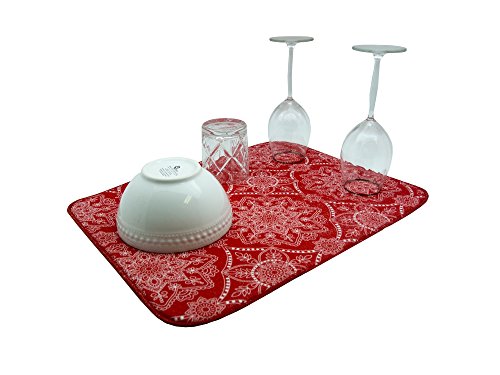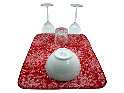 Benefits - Absorbs four times its weight in water thanks to the 100% polyester microfiber material. You don't have to worry about bacteria. - A bright, cheerful look suitable for any decorative scheme. - Reversible and foldable for easy storage - Durable and designed to last - Protects your counter from scratches and scuffs and your delicate dishes from getting chipped - Affordable prices that fit any budget, without sacrificing quality