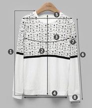 尺码 ①前衣长 ②后中长 ③胸围 ④下摆围 ⑤肩宽 ⑥袖长 ⑦袖臂围 ⑧袖口围