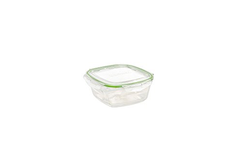 Marinex Facilita Hot Square Glass Bowl with Plastic Locking Lid, 10-Ounce, Clear