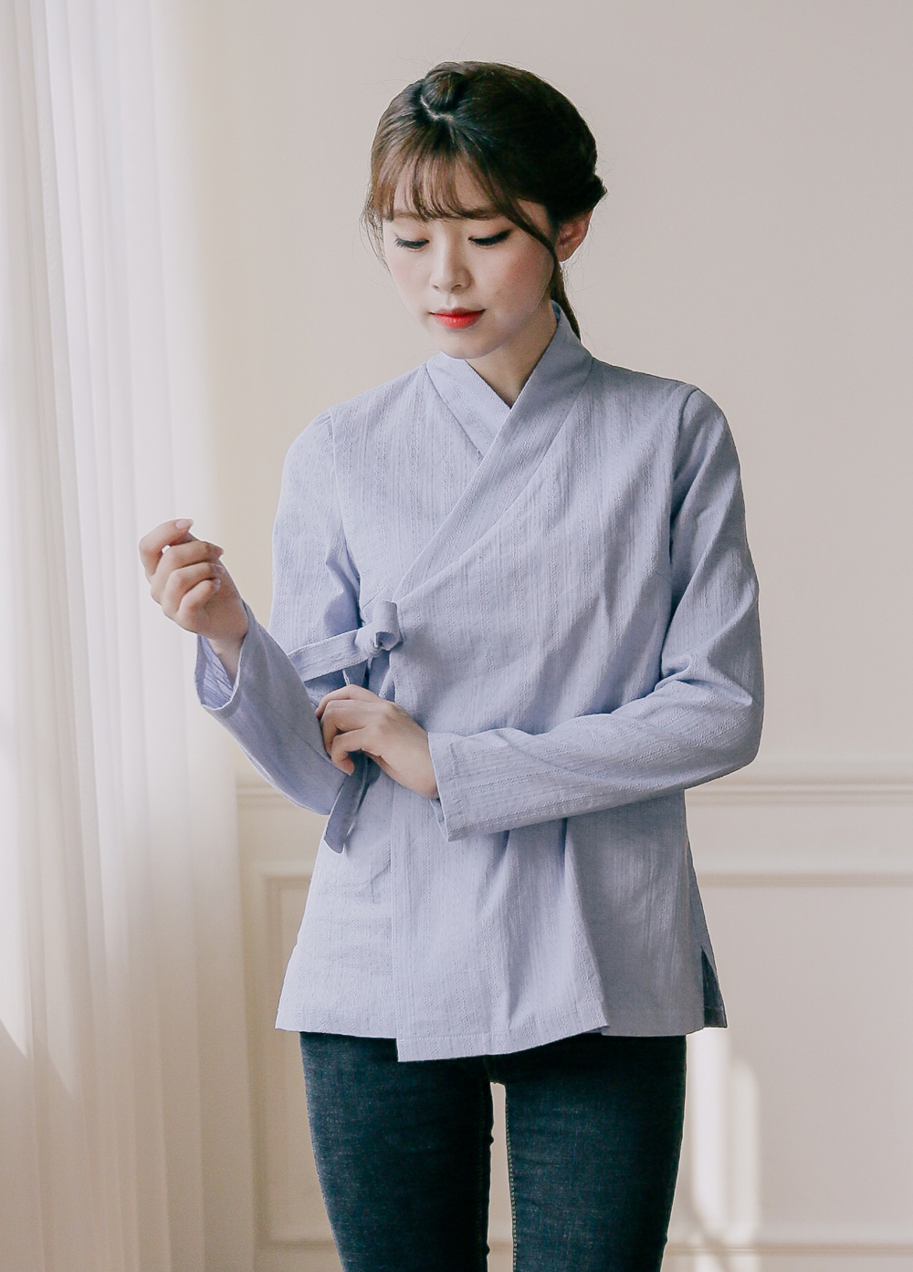 비나리 블라우스는 얇은 면100% 소재로 가볍게 입기 좋아요.