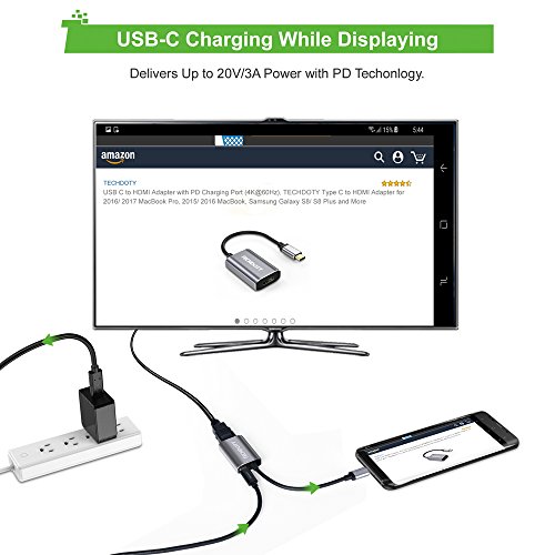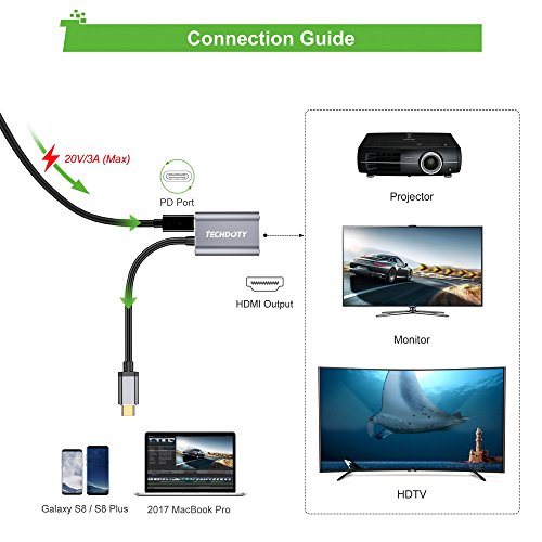 USB C to HDMI Adapter with PD Charging Port (4K@60Hz), TECHDOTY USB Type C to HDMI Adapter Cable for 2016/ 2017 MacBook Pro, 2015/ 2016 MacBook, Samsung Galaxy S8/ S8 Plus and More