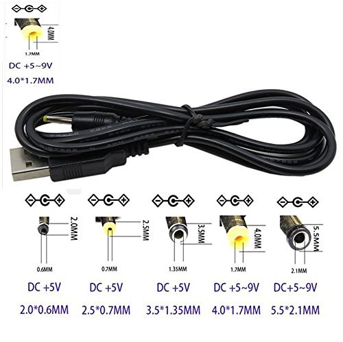 TENINYU USB 2.0 A Male to DC 4.0x1.7mm 5 Volt DC Barrel Jack Power Cable 4FT (Max 2.5 Ampere Power Cable, Center PIN Positive)