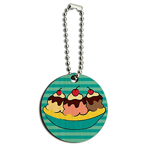 (Graphics and More)/Accessories/Wallets, Money Key Organizers/DIRECT FROM USA/Banana Split Ice Cream Dessert Wood Wooden Round Key Chain