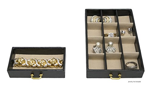 Twin fold out side compartments with snap closures. Great for hanging necklaces, bracelets, and other;