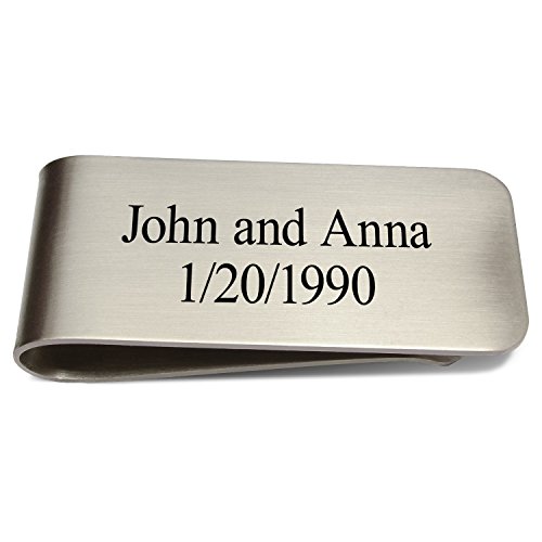 Studio : Venezia Leather Publisher : Venezia Leather Binding : Apparel Product Description Custom Personalized Laser Engraved Stainless Steel Metal Money Clip. The chic and stylish design makes it a great Groomsmen gift, Best Man gift, Father's day and Graduation gift. Great gift idea for Holidays such as Christmas, Valentine's Day, Birthdays, or simply just as an appreciation for a loved one. Custom engraved Money Clip with one line of free engraving (up to 30 Characters Per Line). Size and Placement are as shown on the sample image. Engraving done on Back Side of the Clip (As shown in Picture). English Alphabet Only. More Fonts available upon request, we can engrave in any font and any size as long as it fits on the handle of the knife. For special requests such as these please leave us a message via the contact seller link. If you would like your company logo we can laser engrave your log as well, just contact us via the contact seller link and send us a JPG, PDF, or any Vector Format FIle along with the dimensions you want it to be on the money clip and we can Laser engrave it within 24 hours. Holds bills firmly and hides easily in a shirt or jacket pocket. With a casual simple look and feel, it is comfortable to carry and so small it practically eliminates the need to carry a heavy traditional wallet. Ideal for quick trips to the store or gym, a night out at the club or bars, or vacation trips for convenient and safe carry. Dimensions: 2.15" (Length) x 1.00" (Width) x 0.25" (Thickness) and Weight: 0.77 oz. Made with Premium Quality Stainless Steel Strong Metal body with Spring tension grip to hold up to 10 dollar / Currency bills; Can Hold up to 3 Credit Cards 0