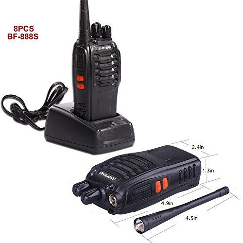 Ammiy BaoFeng 8PCS Walkie Talkie Radio BF-888S 5W Portable Ham CB Two Way Radio Handheld UHF 400-470MHz Transceiver Interphone With Rechargeable Li-ion Battery Headphones (Pack of 8)