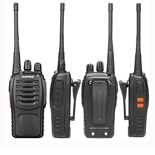 Walkie Talkie Model: Baofeng BF-888s; Each radio has a earpiece and a rechargeable Li-ion battery. They can work together with other BF-888s by selecting the same channel on each. This set includes 8 BF-888S Radio with 1500mAh Li-ion Battery, and antennas, 8 belt clips, 8 chargers and user manual Everything comes separated.