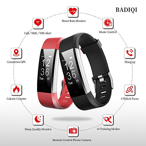 Studio : BADIQI Publisher : BADIQI Binding : Misc. Product Description BADIQI 115 Plus Fitness Wristband Monitors Your Heart Rate and Tracks Your Health! It is a must-have helper for leading a healthy lifestyle. Activity Tracking with GPS: 115 Plus Activity Tracker uses built-in GPS to monitor your activity track makes for more accurate data. 14 Training Modes 8 Default activity mode, additional 6 activity modes can be added in the APP, walking, running, riding, treadmill, hiking, fitness, basketball, badminton, tennis, football, climbing, spinning, yoga, dancing. Heart Rate Monitor: Supports real-time monitoring of heart rate and help user make suitable exercise plan. Sleep Monitoring: The device can automatically recognize your state and monitor all of your sleep progress, identifying your deep sleep and light sleep hours. Notification Alerts: Alarm alert, call alert, sedentary alert, Facebook, Twitter, Linked in etc. by silent vibration. Basic Specifications: Brand: BADIQI Model: 115 Plus Material: TPE high grade Battery: Polymer lithium battery Capacity: 65mAh Data Sync: Bluetooth 4.0 Charging: USB charging standard Screen Display: 0.96' OLED Touchscreen Standby time: 8 days Charging Time: 1 hr Waterproof rating: IP67 Package Included: 1 x Activity Wristband 1 x Silicone Replacement Band 1 x User Manual NOTE: If for any reason you are not satisfied, please do not hesitate to contact us or Amazon customer service.