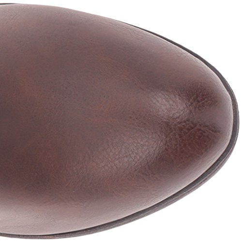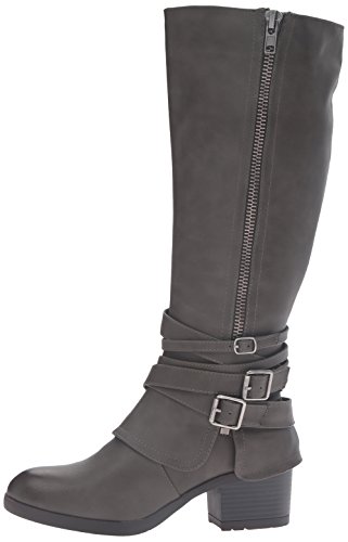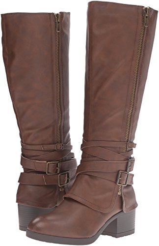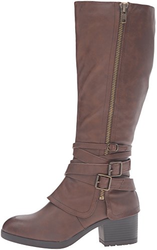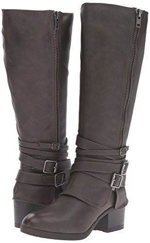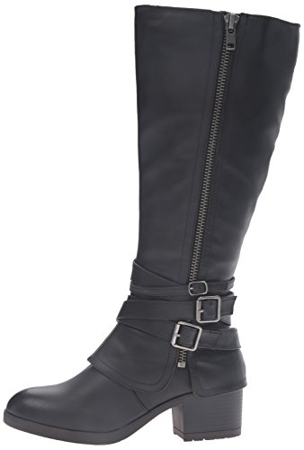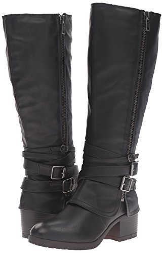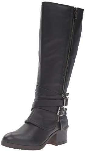 Studio : Madden Girl Publisher : Madden Girl Binding : Apparel Product Description With cross-hatching buckles of varying sizes at the ankle, the rate adds an edgy twist to an otherwise classic thick-heeled boot. styled with knee-high socks and your favorite pair of skinnies or leggings, these are perfect for ringing in the fall weather with fierce, sharp style and the wider calf is universally flattering for all body types. 0