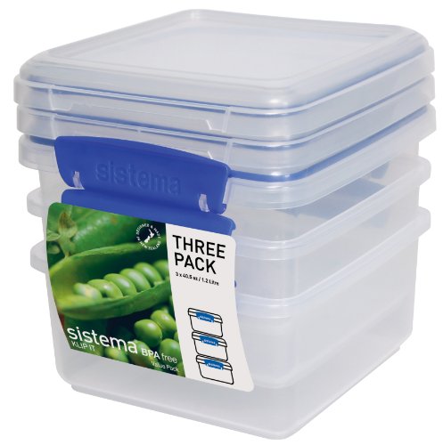Sistema Klip It Collection Lunch Plus Food Storage Containers, 40 Ounce/ 5 Cup each, Set of 3