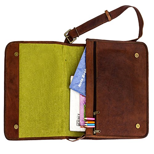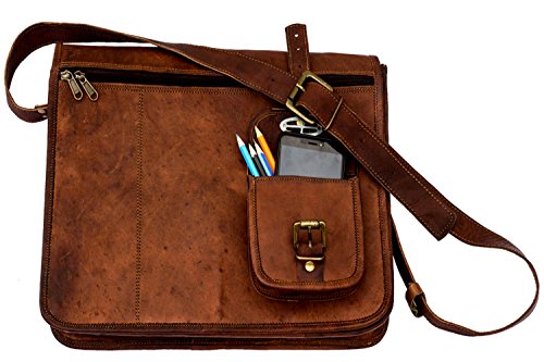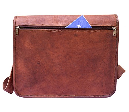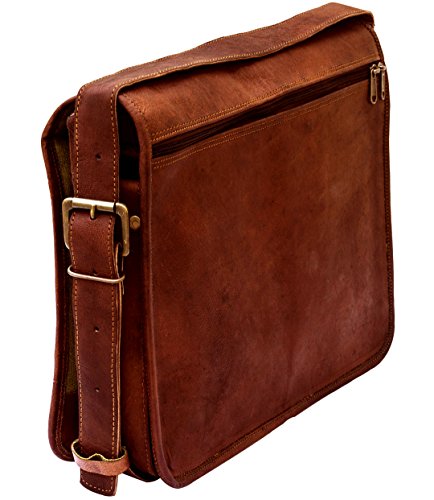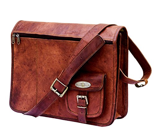-. Feature : HANDMADE BAG WITH RUSTIC AND VINTAGE LOOK:Our bags are 100% handmade by Artisan, natural process of sun tanning is used to give a retro, vintage and rustic look , No use of Chemical. Genuine leather messenger bag is handcrafted by professional experienced artist. Going office or college we need something to carry your all day essentials like laptop, files, folder and other belonging to fit them at one place our leather laptop bag is perfect for all your needs. / SIZE: 15" W x 11" H x 4" D: This well-proportioned and compact briefcase messenger bag for men and women is unlike other bulky leather messenger bags that are difficult to lug around on transit, in taxis and on airplanes. / ENOUGH ROOM: 3 huge compartments with 2 zippered pockets inside, 1 small pocket in outer front for wallet or other essential. One zippered pocket at backside, for cards, cash, cell phone and essential for easy access. Main compartments can be used to keep Laptop, Legal papers, camera, folder, binder, notes, document, computer device , notebooks, chargers and many more. / INCREDIBLY STYLISH AND BEST GIFT: Sturdy enough to stand on its own,looks high end with formal or casual attire. Perfect for students, business or travelers want to make a fashion statement. Best present for Christmas, mother's day gift birthday, father's day for and for other presents. A perfect leather laptop bag, messenger bag , Crossbody bag , leather satchel , brief case . / INCREDIBLY STYLISH AND BEST GIFT: Sturdy enough to stand on its own,looks high end with formal or casual attire. Perfect for students, business or travelers want to make a fashion statement. Best present for Christmas, mother's day gift birthday, father's day for and for other presents. A perfect leather laptop bag, messenger bag , Crossbody bag , leather satchel , brief case.