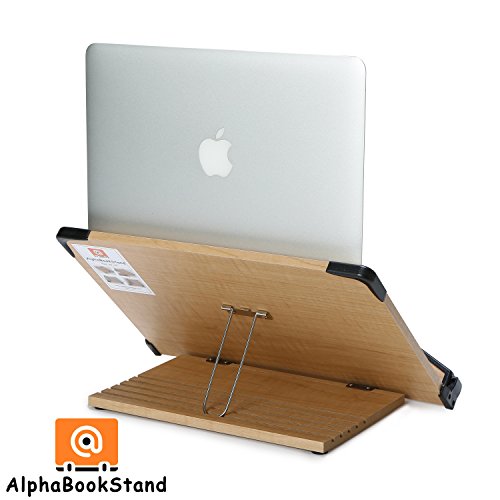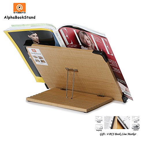 Alpha Book Stand AB1103 A Ergonomic Book Holder w/ Adjustable Lightweight Reading Desk Foldable Tray and Page Paper Clips Bookstands for Textbooks Bible Music Books Tablet Cook