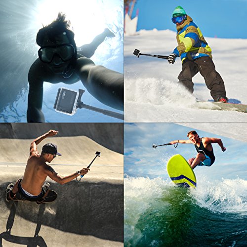 ► LONG REACH – The ProsPole is a for Gopro extension pole that has a telescoping length of 7.5” inch that extends to 20.5” giving you a full range of action camera shooting possibilities. You can take close and wide angle shots while surfing, diving, snowboarding, skiing, skateboarding, hiking, camping traveling and much more. This for Gopro folding pole comes with adjustable head that rotates 180 degrees to capture the perfect angle.