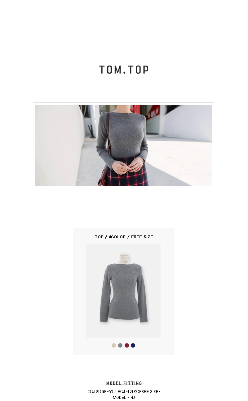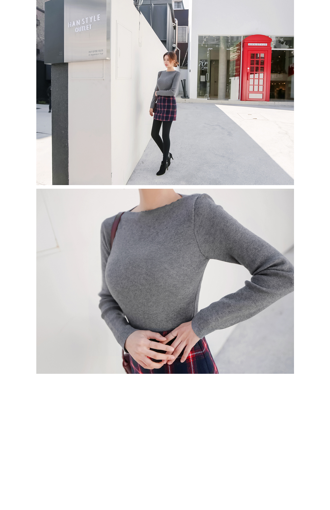 슬림한 라인의 보트넥 니트티를 소개합니다.