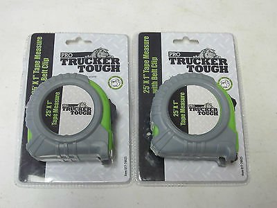 LOT OF ~ 2 ~ 25' X 1" TAPE MEASURE WITH BELT CLIP PRO TRUCKER TOUGH TOOLS ~ NEW