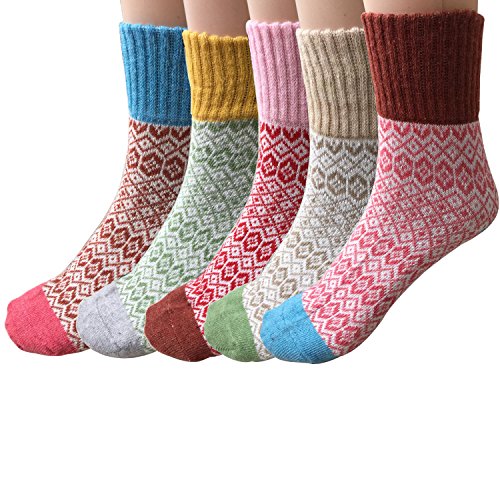 -. Title : 5 Pairs Womens Thick Knit Warm Casual Wool Crew Winter Socks (fits shoe size 5-8)