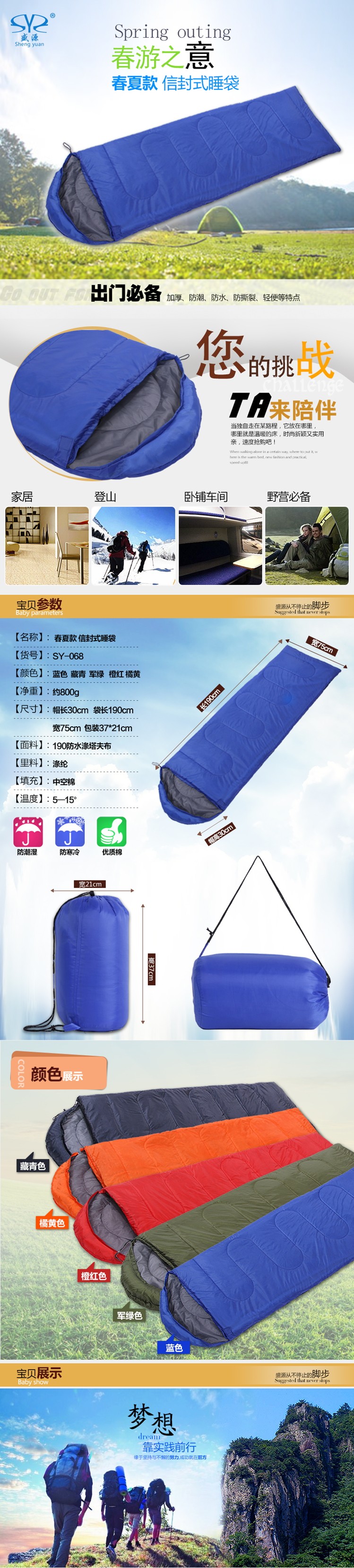 • Sleeping bag Classification: Cotton sleeping bag