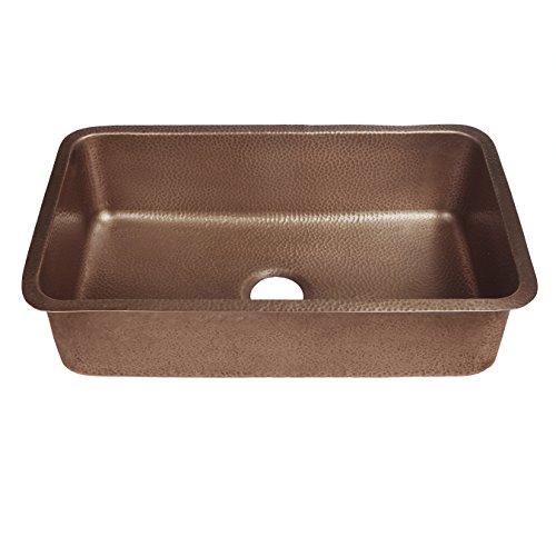 Sinkology SK202-30AC Transitional Orwell Undermount Handmade Solid Copper 30 In. Single Bowl Kitchen Sink In Antique Copper, 30-Inch, Hammered Antique Copper