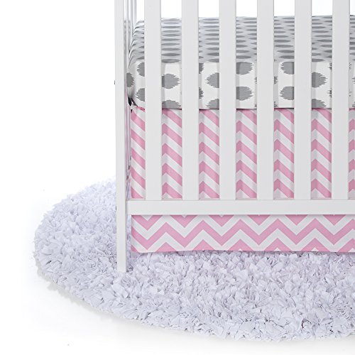 -. Feature : Swizzle pink baby bedding creates a beautiful and modern nursery for baby girl, 3 piece set includes quilt, fitted sheet and crib skirt, premium fabrics last longer / Contemporary chevron P.R.Int in pink, grey and white on 100% cotton and other soft velvet fabrics, trimmed with silver piping / Super soft white quilt back eliminates the need for fill / Fully elasticized sheet with deep pockets prevents slippage and fits most mattresses, ultra softness increases with washings / Hemmed crib skirt with a 16" drop, easily accessorize with vinyl decals, wall art and assorted pillows, bumper sold separately