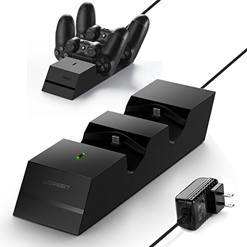 Dual Charger for PS4 Controller Ugreen Dual USB Charging Docking Station Allows you to securely store and charge up two Playstation 4 / PS4 / PS4 Slim / PS4 Pro Controllers simultaneously.