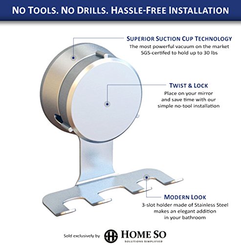 NO TOOLS. NO SCREWS. HASSLE-FREE INSTALLATION ★ No more ugly holes in your bathroom! Simply place on the mirror above your sink, twist the knob, and you're done in no time! Our unique Twist-&-Lock suction cup technology guarantees the most powerful and everlasting vacuum hold on the market!