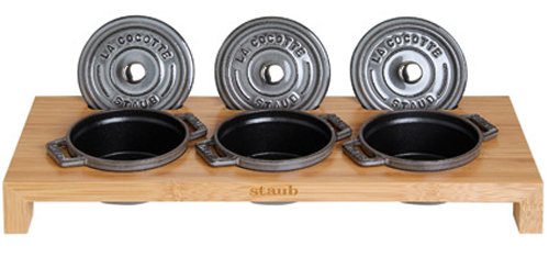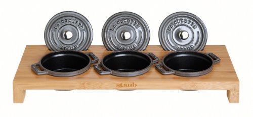 -. Title : Staub Cast Iron - 1190698 - 3 Mini Casseroles Display Shelf- Bamboo