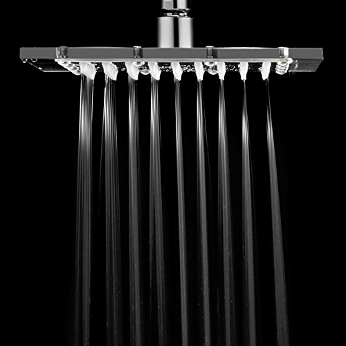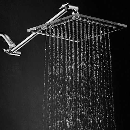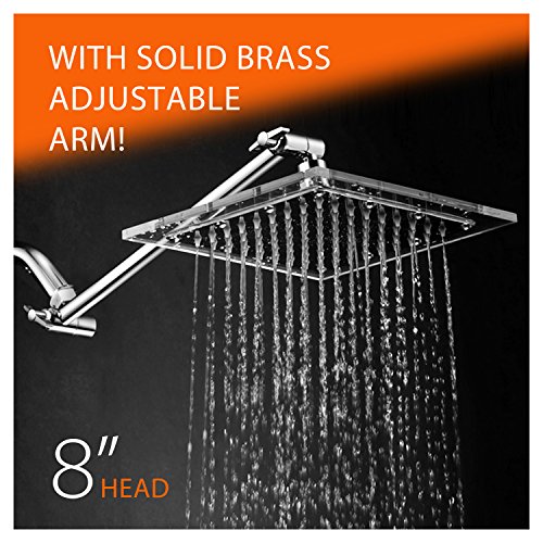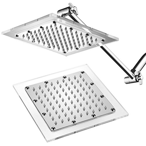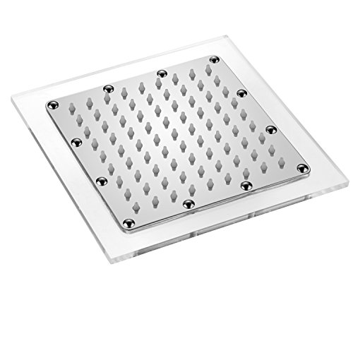 RAIN SHOWE HEAD: Square Stainless Steel 8-inch Rainfall Shower Head with Clear Acrylic Rim